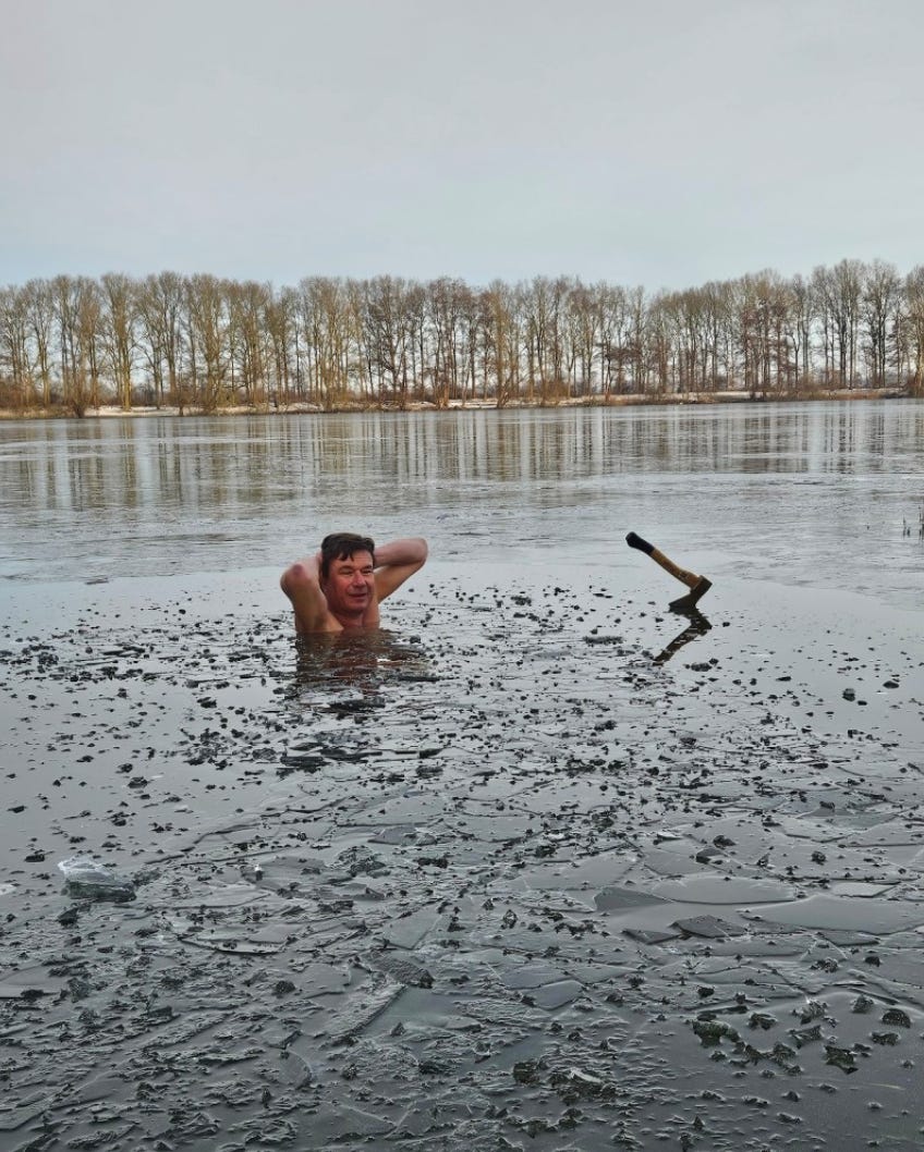 And then there was Sunday with our dipping club. It was freezing, there was ice on the water. A path through the ice had to be chopped first. OMG hahaha 🪓🥶 Thank you Jan Willem for being a badass and doing that work for us 🙏.
